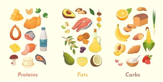 Provide different food samples showcasing a balanced diet
